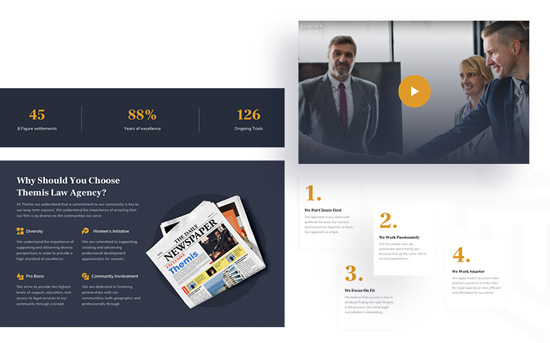 Themis is a professional Joomla law firm template. It's the ideal choice for attorneys, advocates, solicitors, and law firms. The Themis template is versatile and highly customizable that can be used for all types of legal consultations and other relevant corporate websites.